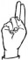 На ћирилици написано ЈЕРЕМИЈА РАДОВАНОВИЋ састоји се из 19 слова [?]. Исписано ћириличном једноручном азбуком за глувонеме: